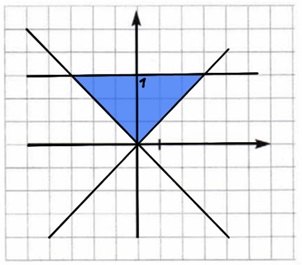 б) (у >= х) и (у >= -х) и (у <= 1)