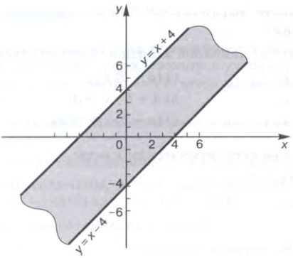 Ответ: (у<= x+4) И (у >= x-4)