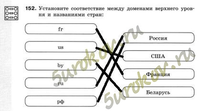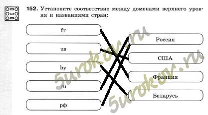 Задание 152. Установите соответствие между доменами верхнего уровня и названиями стран.