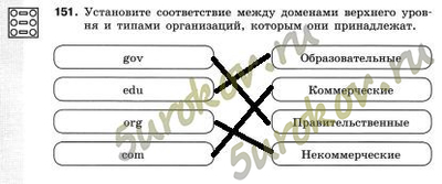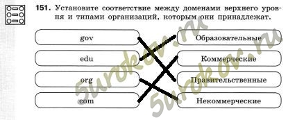 Задание 151. Установите соответствие между доменами верхнего уровня и типами организаций, которым они принадлежат.