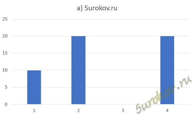 Какие диаграммы могут быть построены по значениям диапазона ячеек A2:D2? Ответ: а; б.