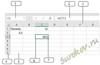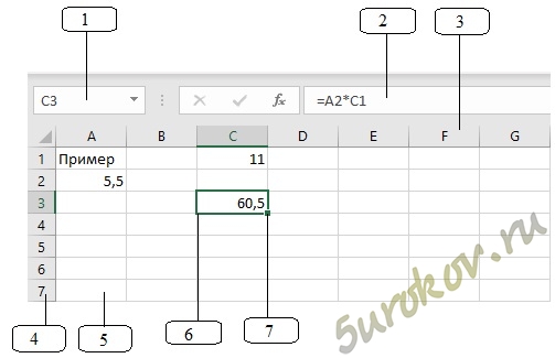 Задание 99. Установите соответствие между основными элементами интерфейса электронной таблицы и их названиями.