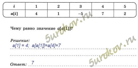 Решение: a[1] = 4; a[a[1]] = a[4] = 7