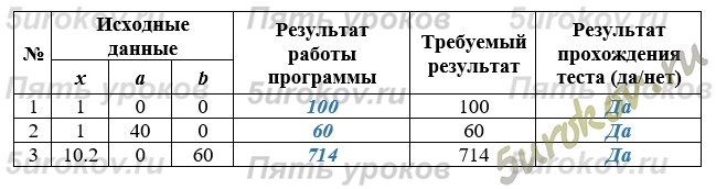 Протестируйте программу при следующих исходных данных: