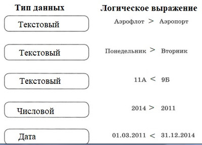 Задание 57. Определите типы данных и впишите знаки отношений так, чтобы логические выражения были истинными.