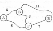 Задание 39. На схеме изображены дороги между четырьмя населенными пунктами А, Б, В, Г и указана протяженность этих дорог.