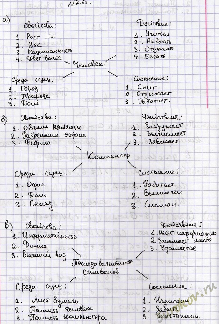 Задание 20. Объект — некоторая часть окружающего мира, рассматриваемая человеком как единое целое. Каждый объект имеет имя, обладает некоторыми признаками и существует в определенной среде.