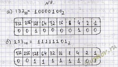 Задание 9. Переведите целые десятичные числа в двоичную систему счисления.