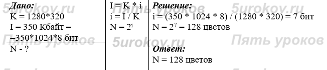 ГДЗ Рабочая тетрадь по Информатике 9 класс БосоваРисунок размером 1280 х 320 пикселей занимает в памяти 350 Кбайт без учета сжатия