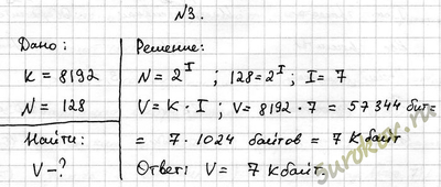 Задание 3. Текст, содержащий 8192 знака (с пробелами), закодирован с помощью алфавита, содержащего 128 символов. Сколько килобайтов занимает в памяти этот текст?