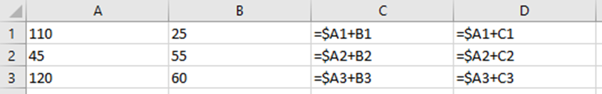 Определите значения в ячейках диапазона C1:D3 после копирования в них формулы из ячейки С1