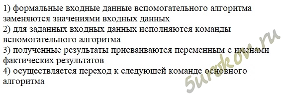 8. Процесс выполнения команды вызова вспомогательного алгоритма в основном алгоритме: