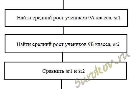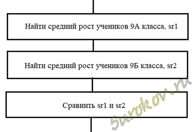 5. Известен рост каждого ученика 9А класса и 9Б класса. Опишите алгоритм сравнения среднего роста учеников этих классов.